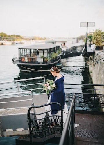 La Baleine Blanche, superbe péniche (qui reste à quai !) avec son atmosphère unique et son caractère parisien, a offert le cadre idéal pour le mariage de Cécile et Antoine. Ma Vie de Bohème a orchestré une journée originale avec un foodtruck sur les quais de seine (obtenir les autorisations n'aura pas été une mince affaire). Une journée d'exception, capturée avec justesse par Stefani.