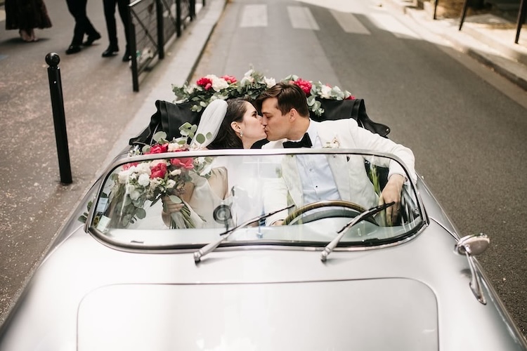 Paris, capitale de l'amour, a accueilli le mariage de Julie et Ethan au Châlet des Iles, un cadre unique au cœur du Bois de Boulogne. Ma Vie de Bohème a assuré la coordination et la décoration de ce mariage franco-américain d'exception, mêlant élégance parisienne et american touch ! La voiture des mariés, bien décorée par Jen qui a fait toute la partie fleur, n'est pas passée inaperçue dans les rues de Paris.