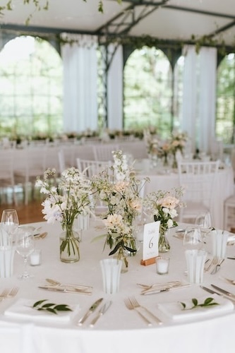L'Abbaye de Morienval, un vrai coup de coeur pour Ma Vie de Bohème. L'équipe a imaginé une décoration qui épousait l'architecture historique du lieu, avec des compositions florales raffinées et une ambiance intimiste et lumineuse.