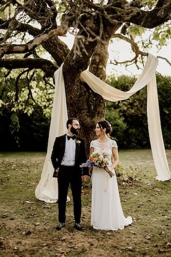 Les grands espaces verdoyants du Perche ont accueilli le mariage champêtre et bohème de Rosemary et Maxime. Ma Vie de Bohème a créé une décoration florale naturelle et élégante, en parfaite harmonie avec ce domaine rustique et chic — pour un mariage qui ressemble vraiment à leurs envies.